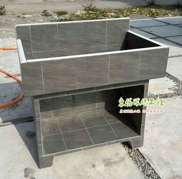 水槽主體使用水泥灌製而成,外層貼覆磁磚,結合了水泥的堅固和磁磚的美觀還有易清潔特性,簡單美觀~安全又耐用,適合室內外使用!